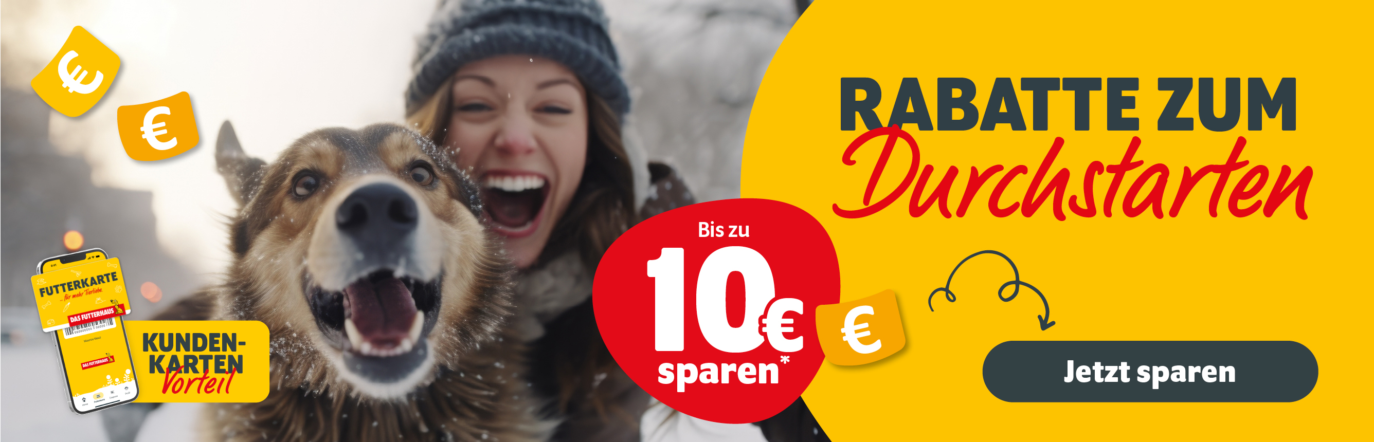 *Nur ein Rabatt je Einkauf und Person auf vorrätige Ware: 2 € ab 20 € (exklusiv im Markt!), 5 € ab 30 € oder 10 € ab 55 € Einkaufswert. Ausgenommen sind Geschenkkarten, reduzierte Ware, Tiere, Aquarien/-Kombinationen, Pferdefutter und Reitsportzubehör, Hobbyfarming-Futter/-Zubehör sowie Druckerzeugnisse. Nicht kombinierbar mit anderen Rabatten, Gutscheinen und Aktionen. Keine Barauszahlung möglich. Einmalig gültig in Deutschland bei Vorlage von Coupon und FUTTERKARTE vom 17. bis 24.1.2026 in teilnehmenden Märkten sowie vom 17. bis 25.1.2026 bei Einkauf auf futterhaus.de mit eingeloggtem Kundenkonto. Versand nur innerhalb Deutschlands.